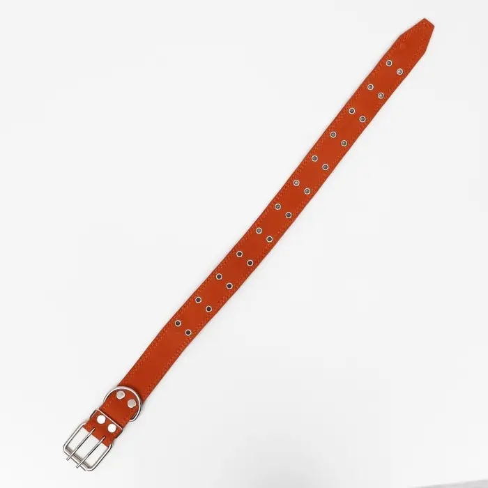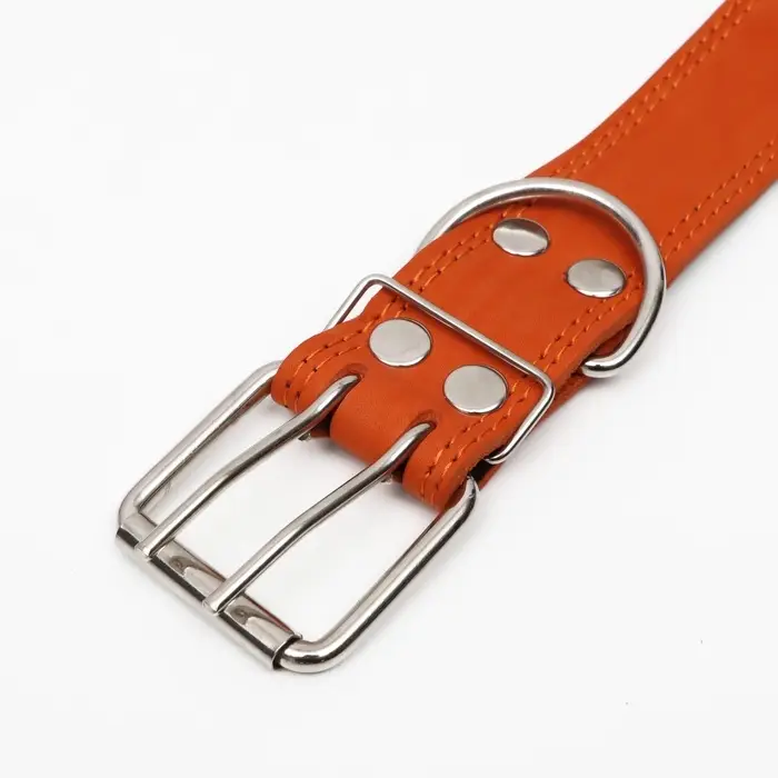 Ошейник безразмерный, 83×4.5 см, ОШ 20-71 см, на синтепоне, кожа, оранжевый