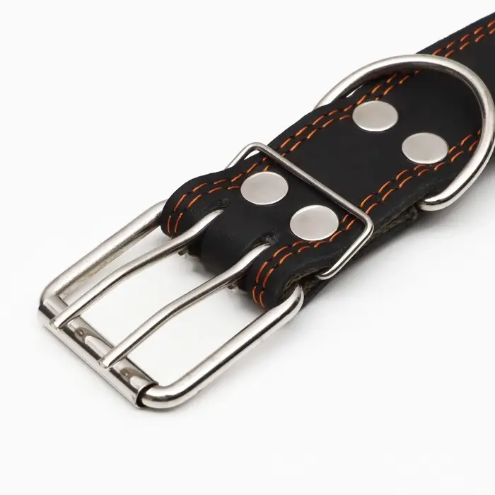 Ошейник сшит из цельного куска кожи и прошит толстой капроновой ниткой, для того, чтобы ошейник радовал Вас и Вашего питомца продолжительное количество времени.