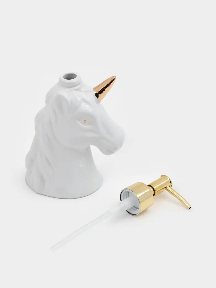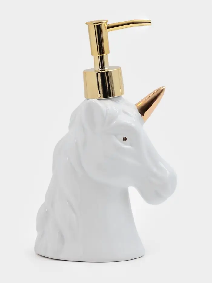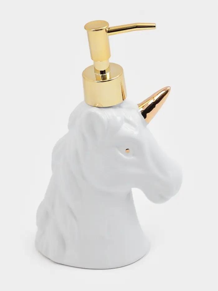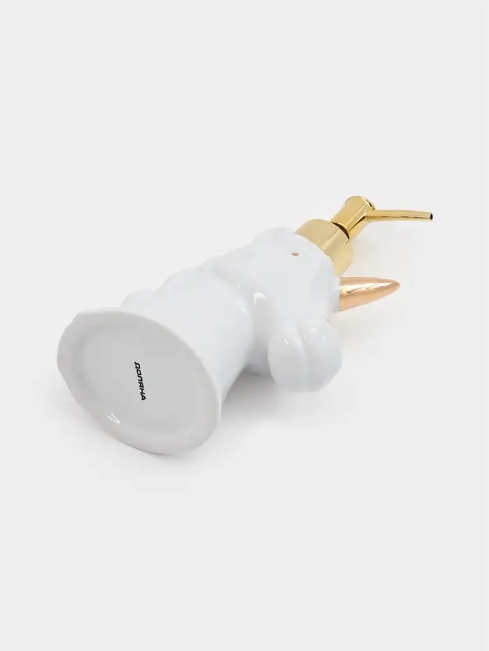 Керамический дозатор для жидкого мыла «Единорог» станет стильным дополнением вашей ванной комнаты или кухни. Такой аксессуар очень удобен в использовании. Просто перелейте жидкое мыло или моющее средство в диспенсер, а когда понадобиться, выдавите необходимое количество лёгким нажатием на помпу дозатора.