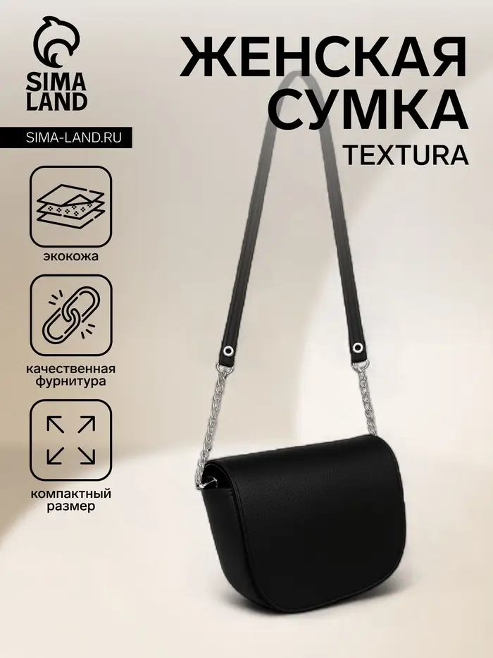 Сумка женская мессенджер TEXTURA на магните, 15×6×13 см, чёрная