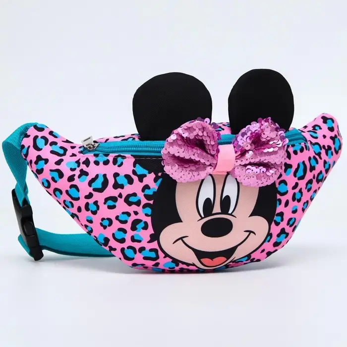 Сумка поясная детская для девочки, с ушками, 25×6×13 см, Минни Маус