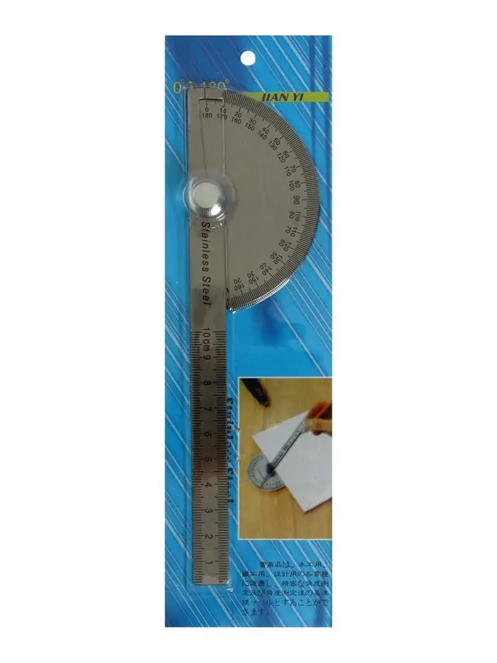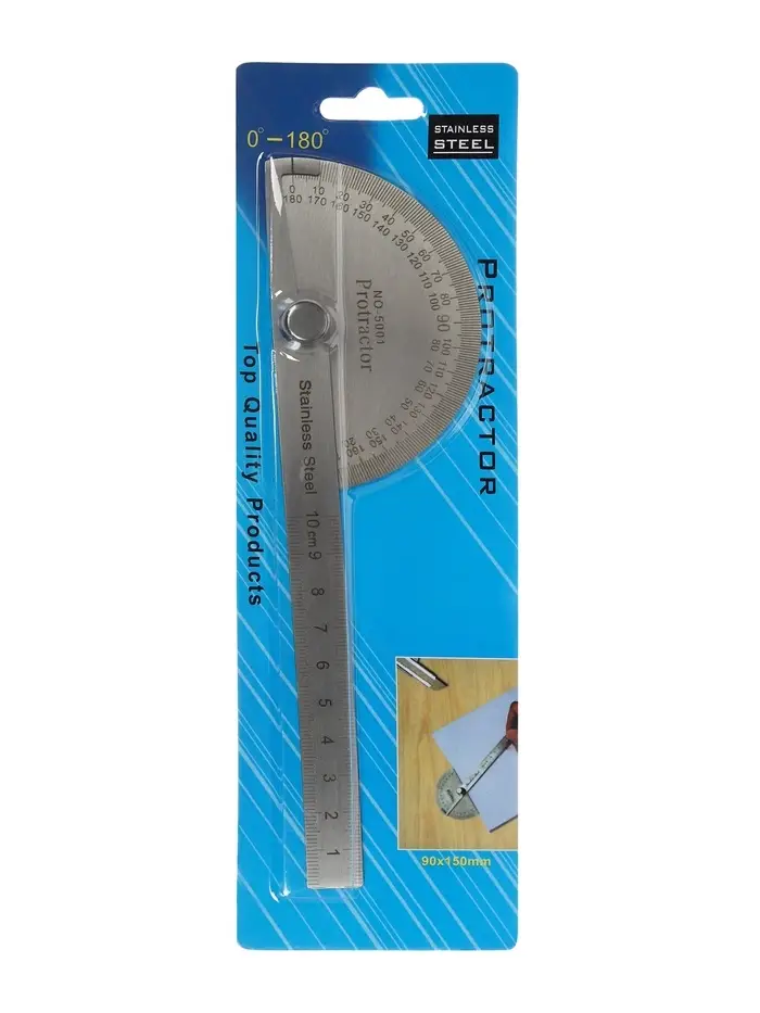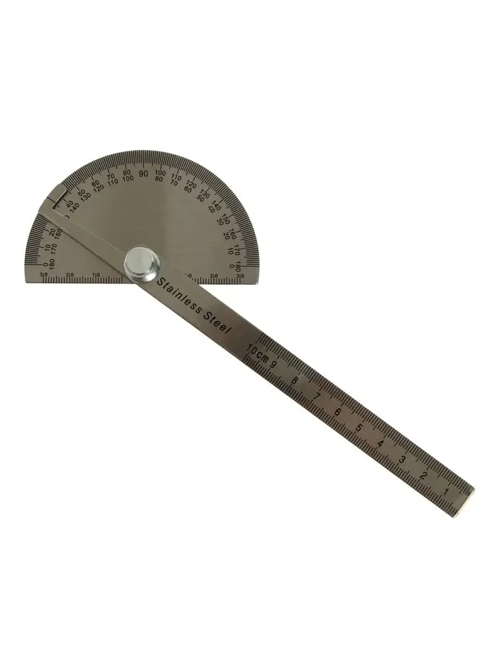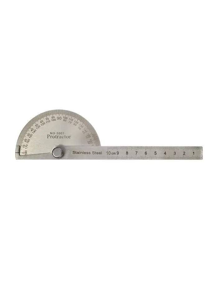 Металлический транспортир с линейкой — это эталон точности для черчения и геометрии. Его конструкция совмещает в себе два инструмента: для измерения углов и построения отрезков. Выполненный из нержавеющей стали, он сохраняет геометрическую неизменность и чёткость шкалы на протяжении всего срока службы.