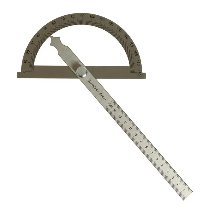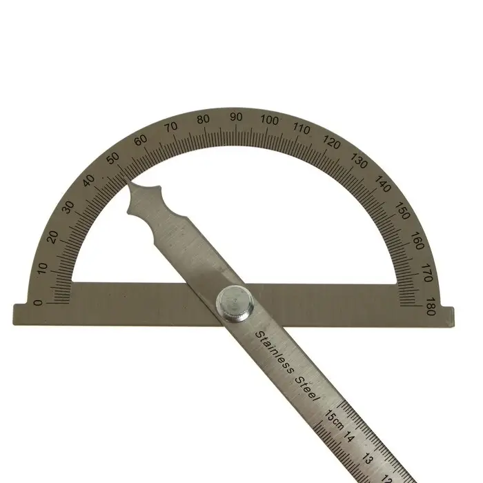 - Чёткая гравировка шкалы на полукруглом транспортире (0–180°) обеспечивает точное измерение углов.