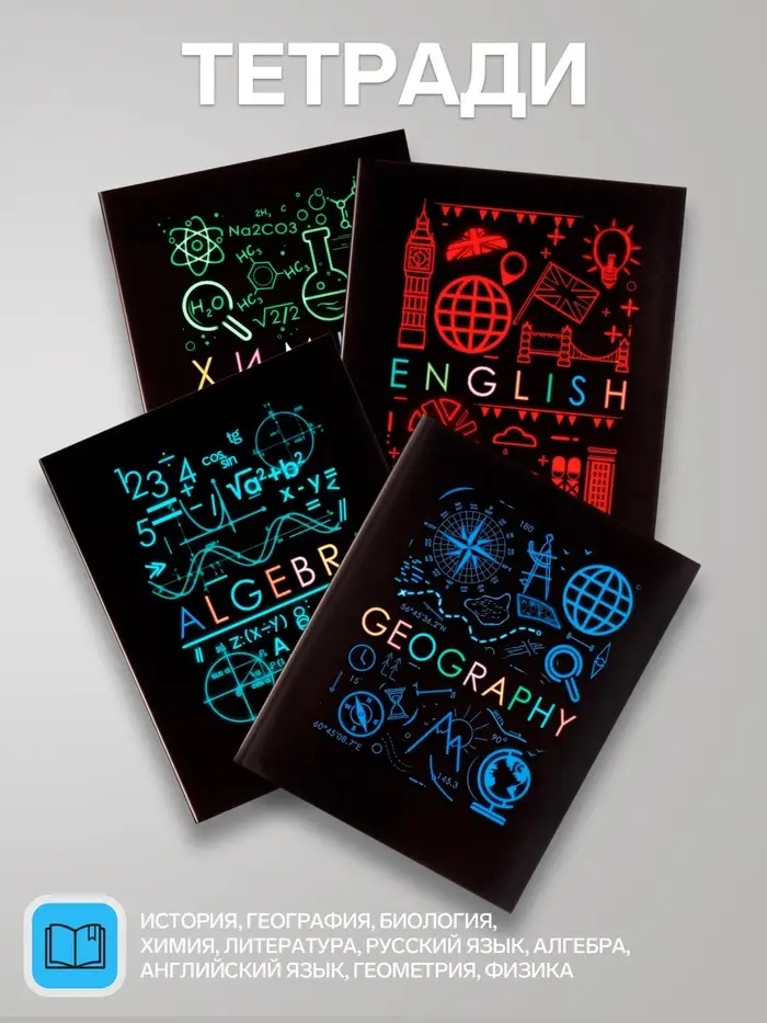 Набор ярких тетрадей для школы сразу собирает все необходимое для учебы. Десять предметных тетрадей со справочными материалами помогают быстро найти нужное правило или формулу, не отвлекаясь от урока.