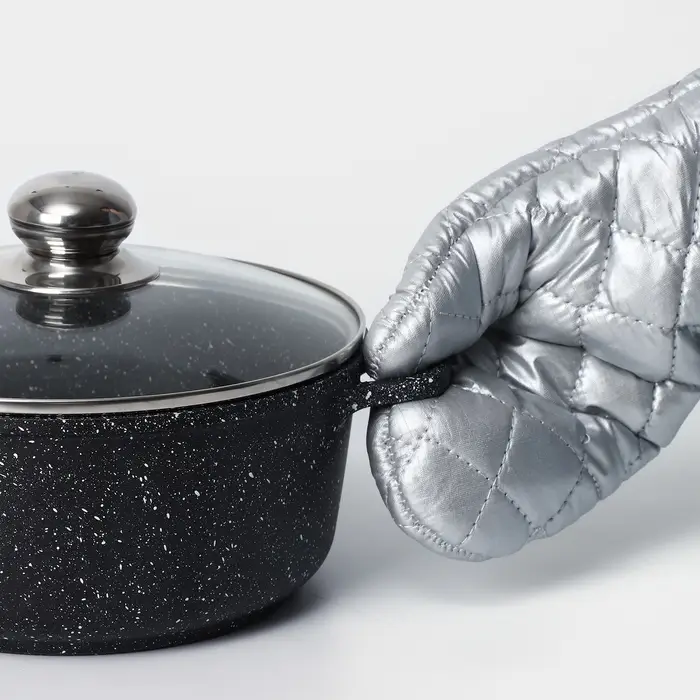- Универсальный серый цвет и классическая форма варежки подойдут к любому кухонному интерьеру.