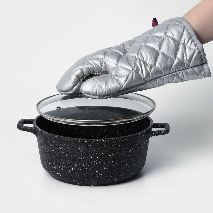 Эти кухонные прихватки разработаны для максимальной безопасности и удобства. Их форма варежки гарантирует плотное прилегание и надежный захват, а прочный материал эффективно защищает от ожогов при работе с горячей посудой. Прихватки станут незаменимым элементом на вашей кухне.