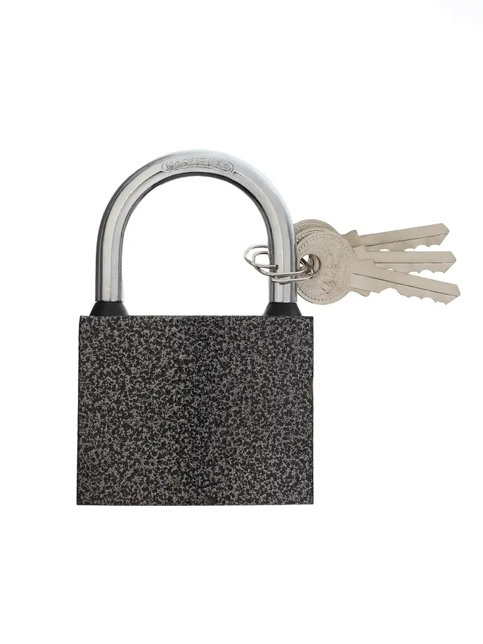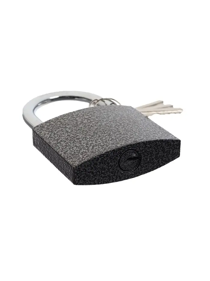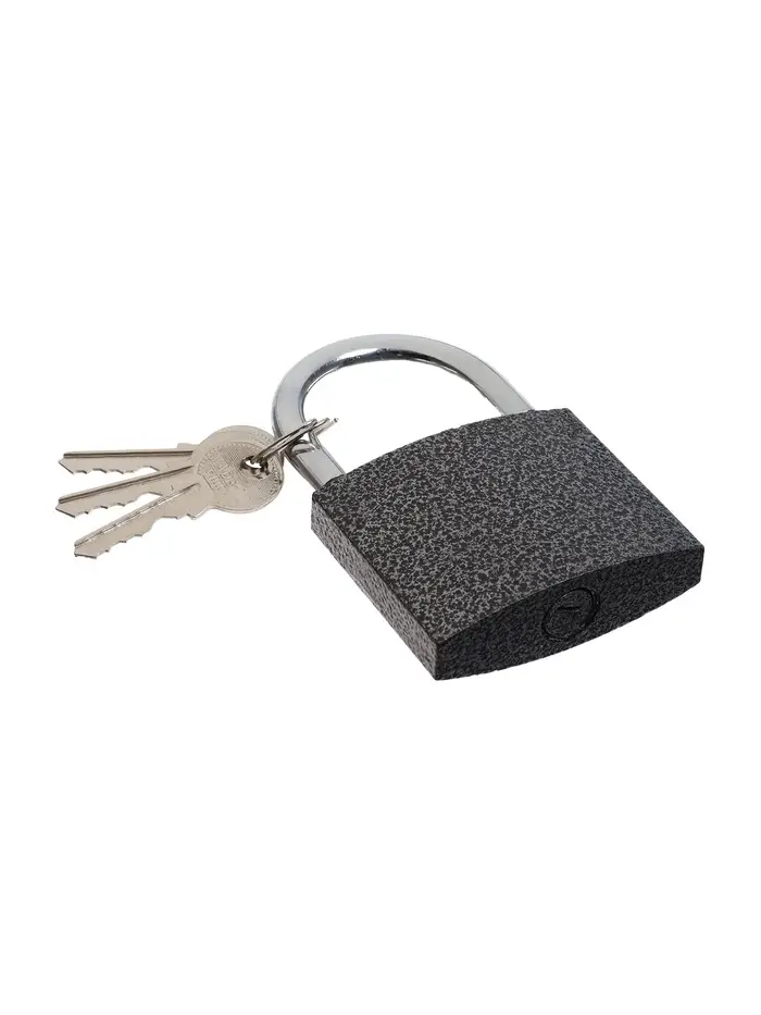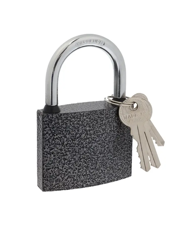 Прочная металлическая конструкция открывается только ключом. Замок оснащён насадками на дужку, которые предотвращают попадание влаги в механизм. Аккуратный внешний вид позволяет вешать замок на видное место.