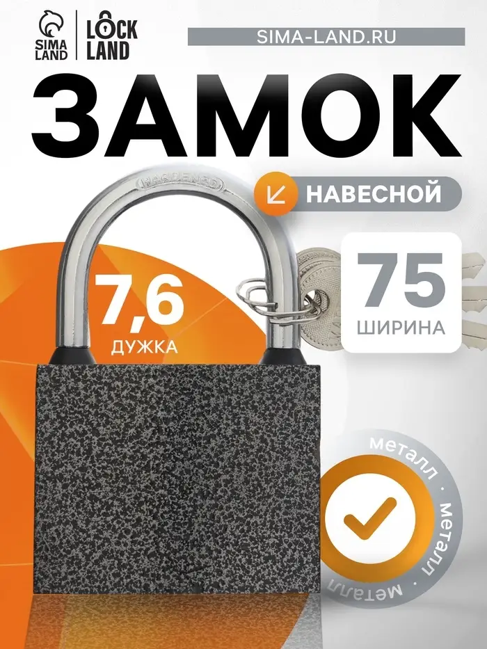Замок навесной LOCKLAND, с влагозащитной дужкой, 75 мм