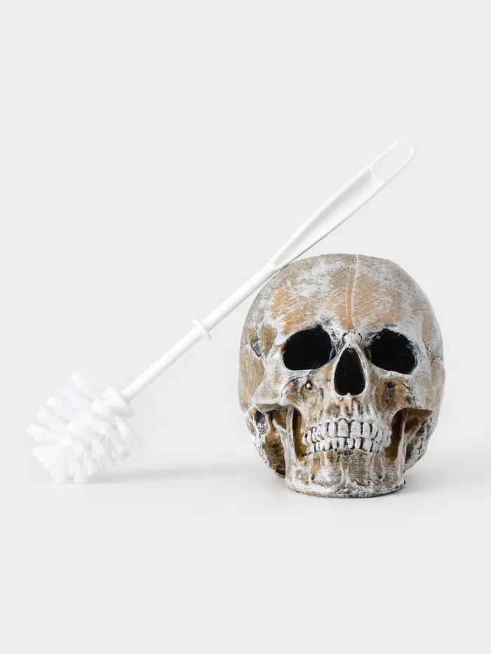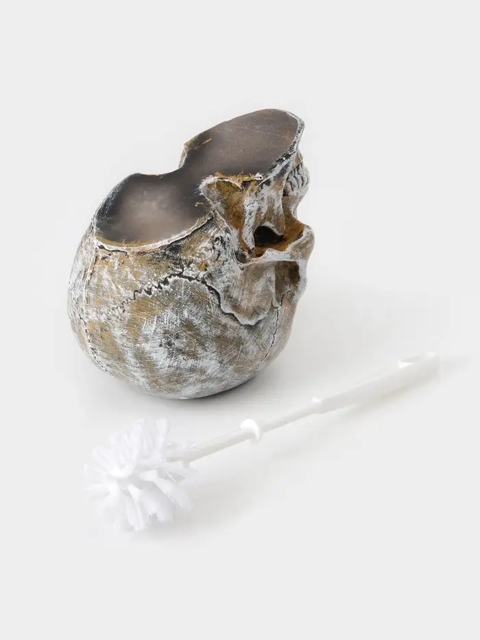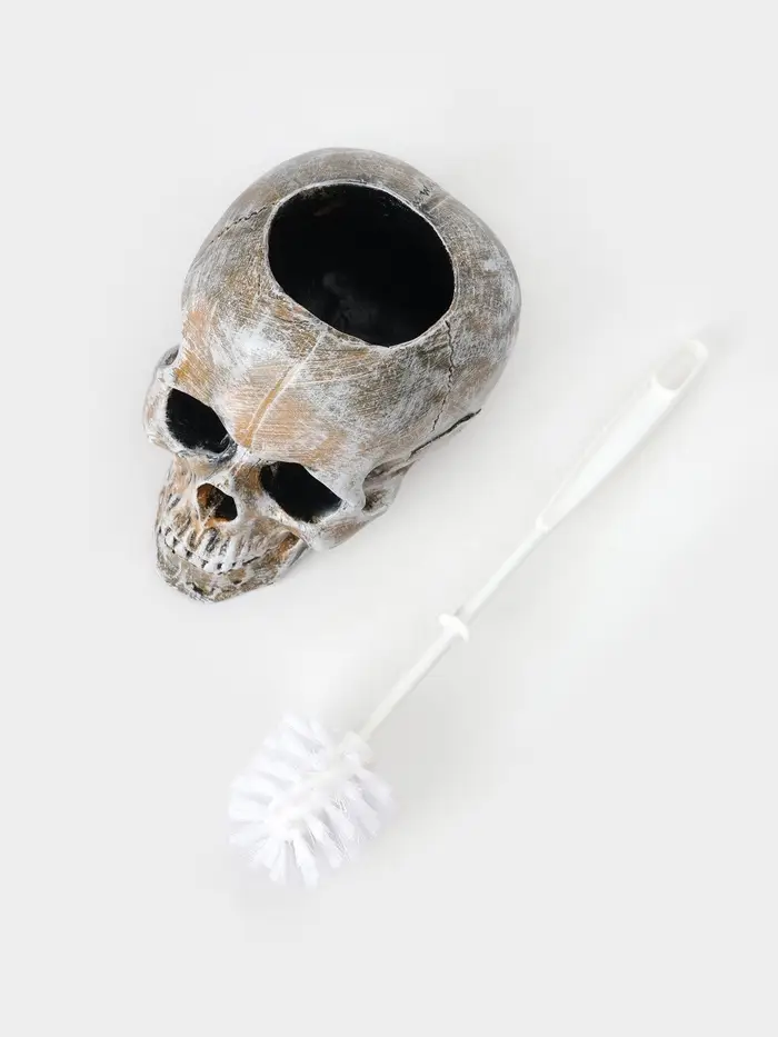 Ёршик для унитаза с подставкой «Череп», пластиковая ручка, 16×15×22 см, белый