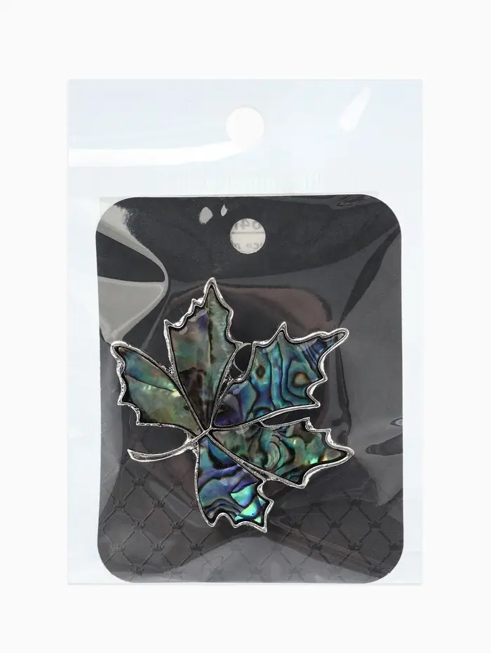 Брошь-кулон «Галиотис. Лист клёна», зелёная в чернёном серебре