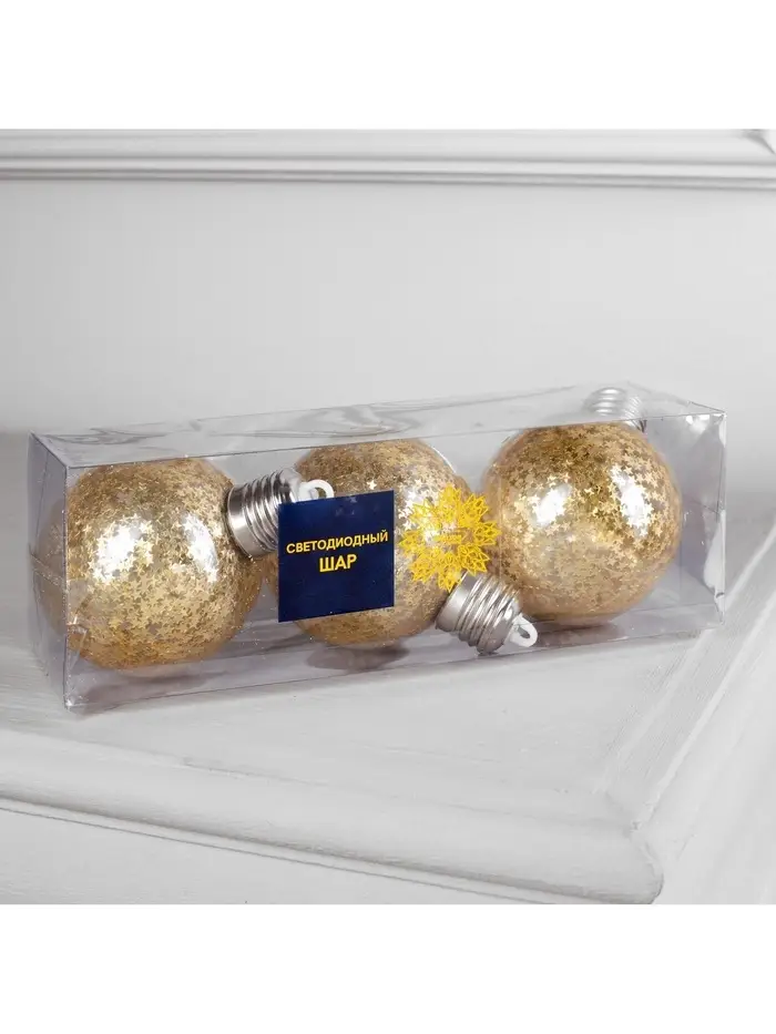 Набор ёлочных шаров «Мишура звёзды», 3 шт., d=8 см, 5 LED, от батареек, свечение белое