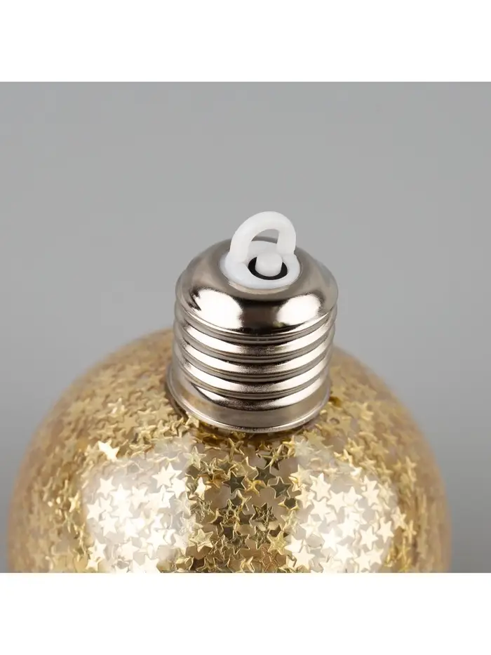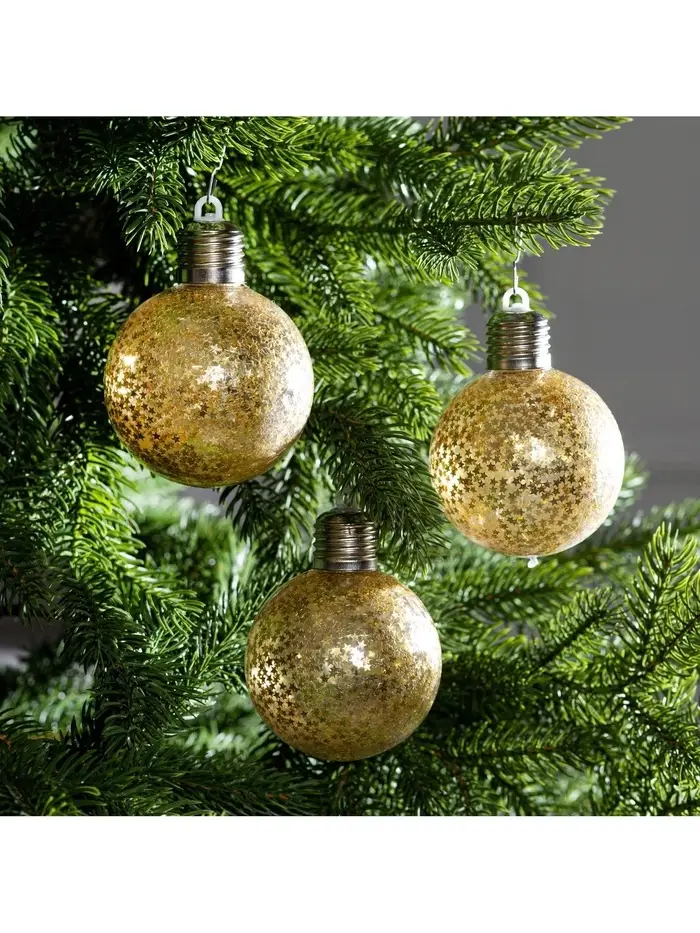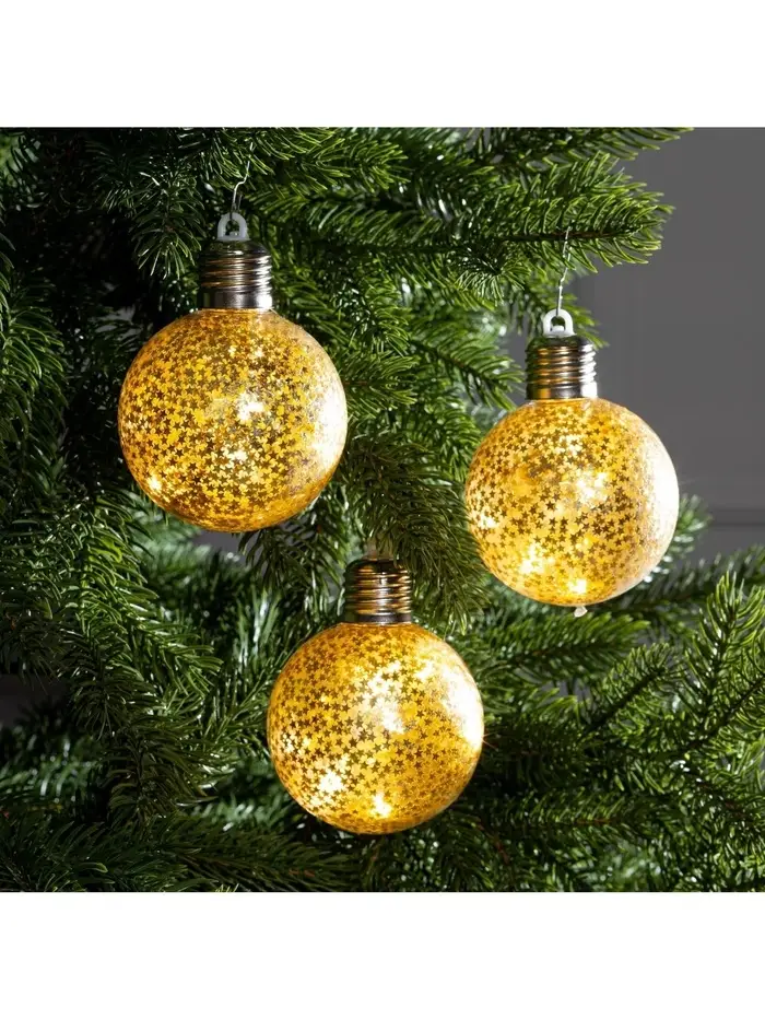 Набор ёлочных шаров «Звёздочки золотистые», 3 шт., d=8 см, от батареек, свечение тёплое белое