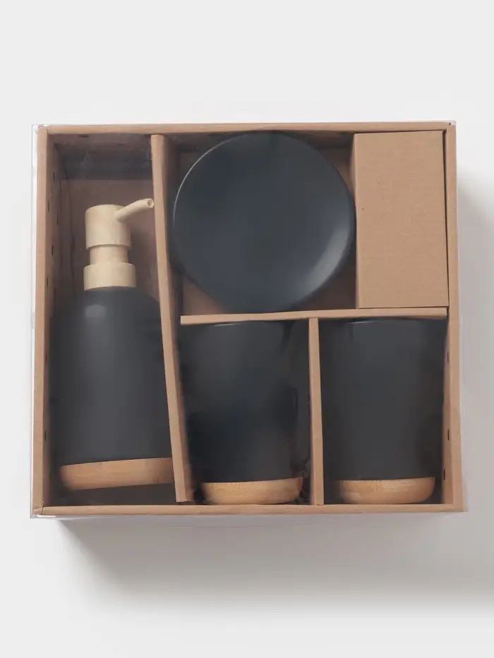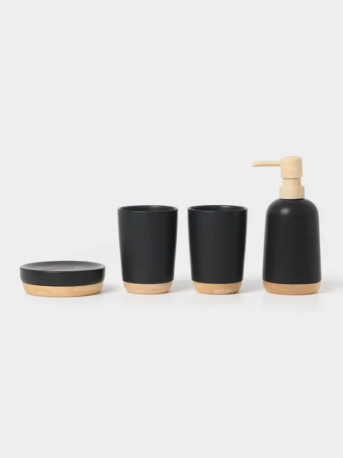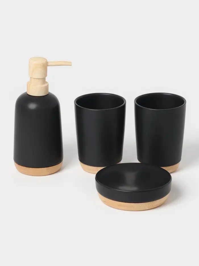 Аксессуары для ванной «Эко», 4 предмета, мыльница, дозатор для мыла, 2 стакана, чёрные