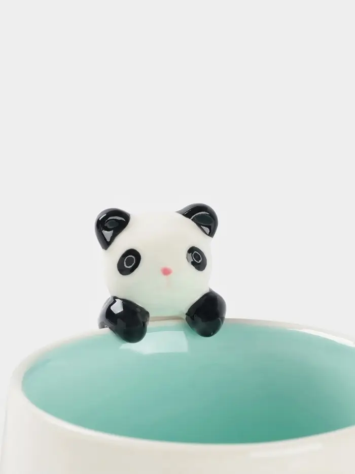 Милая керамическая кружка с фигуркой пандочки создают атмосферу уюта и дарят хорошее настроение. Подходит для детей и взрослых, можно использовать в микроволновой печи и мыть в посудомоечной машине.