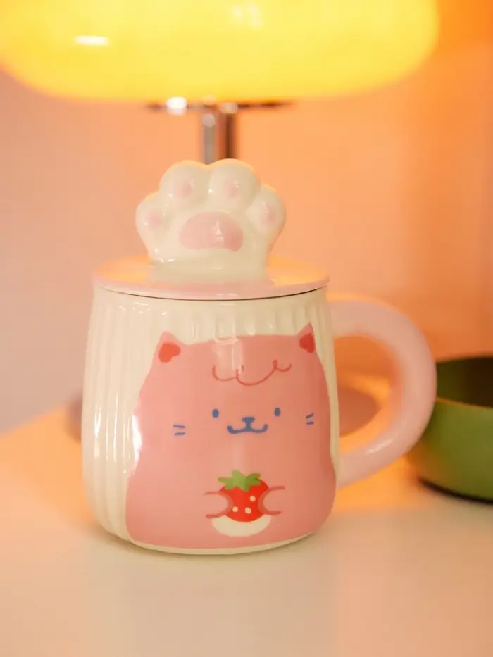 Наслаждайтесь горячим чаем или кофе в этой восхитительной розовой керамической кружке с крышкой! Объемом 450 мл, с очаровательным изображением котика на корпусе и милой фигуркой лапки на крышке, она станет вашим самым любимым аксессуаром. Идеальна для ежедневного использования, ведь ее можно безопасно греть в микроволновой печи и мыть в посудомоечной машине.