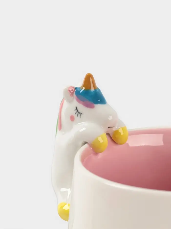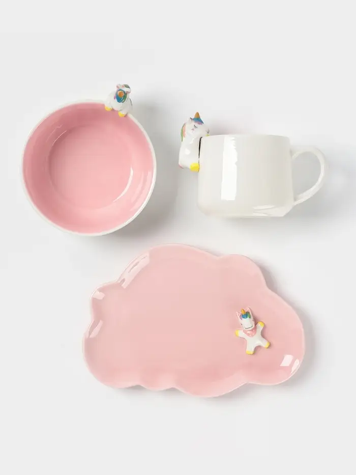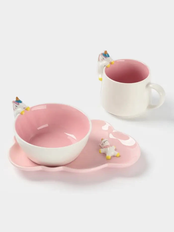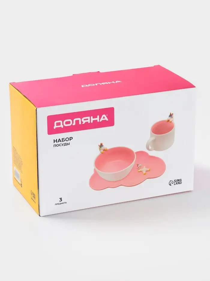 Набор детской посуды Доляна «Радужный единорог», 3 предмета: кружка 350 мл, супница 450 мл, тарелка, керамика, розовый