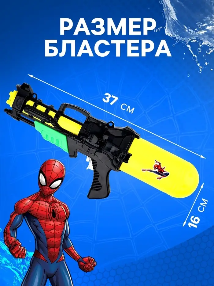 Сражайся со злодеями, заряжая водой! Помповый водный бластер – надёжное оружие для летних битв. Яркий дизайн с любимым супергероем, мощный напор воды и вместительный резервуар делают игру еще интереснее.