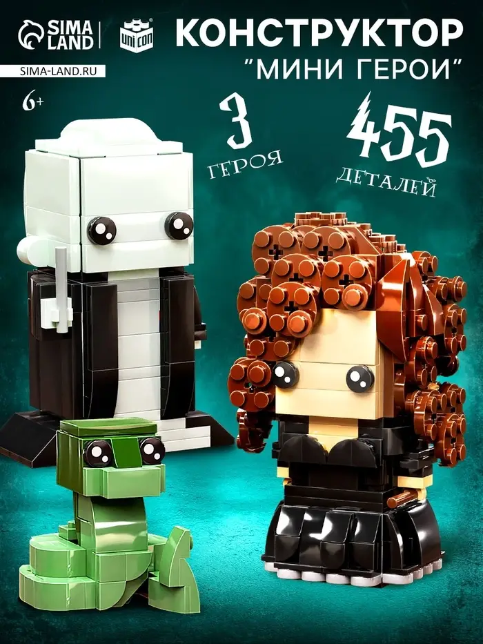 - 455 деталей: Достаточно элементов для сборки трёх детализированных фигурок.