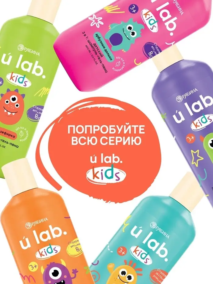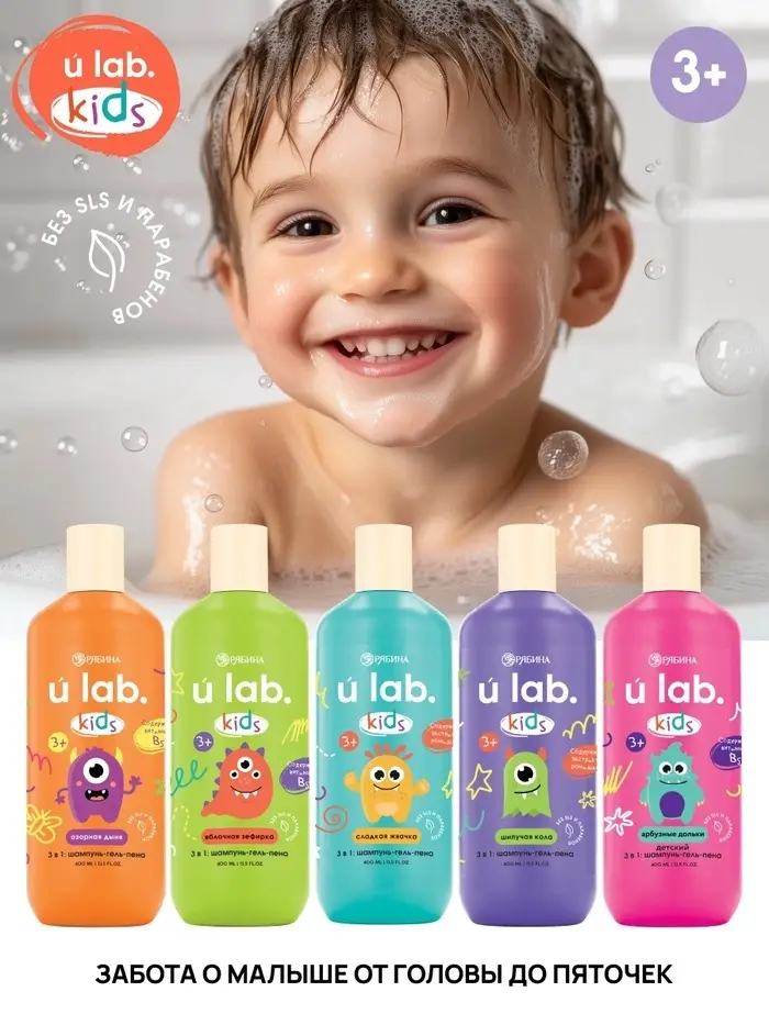 Детский шампунь-гель-пена 3в1 «Монстрики», 400 мл, аромат шипучая кола, ULAB
