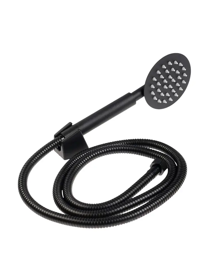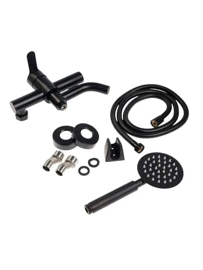 - Комплект для душа: В поставку входит гибкий шланг с душевой насадкой черного цвета.