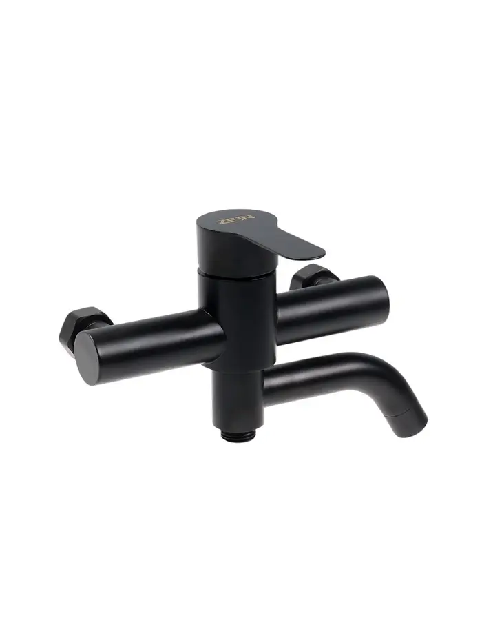 Смеситель для ванны ZEIN Z3852, однорычажный, душевой набор, лейка 5 режимов, черный