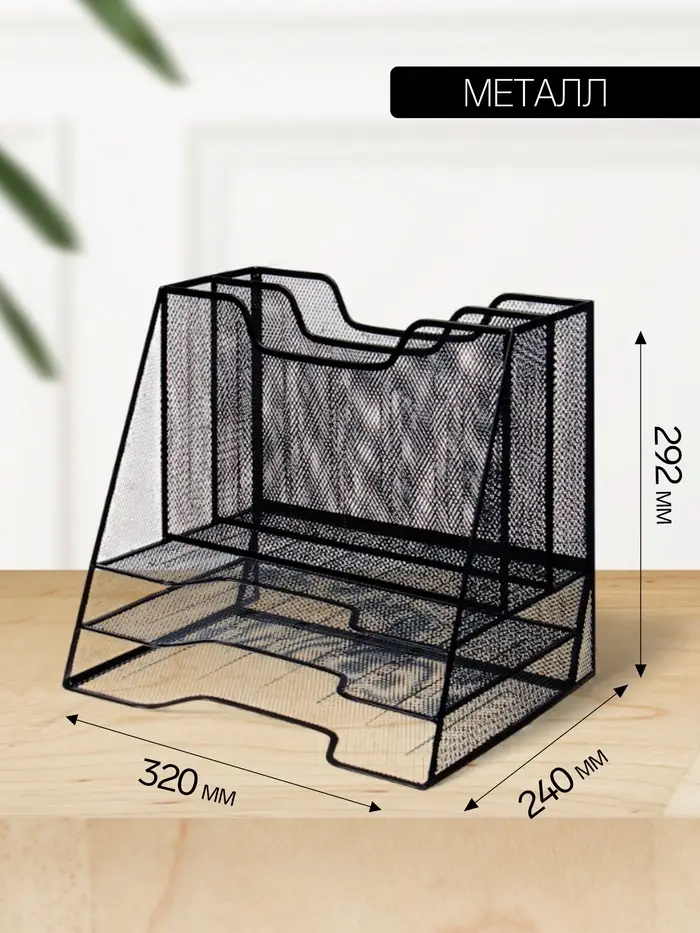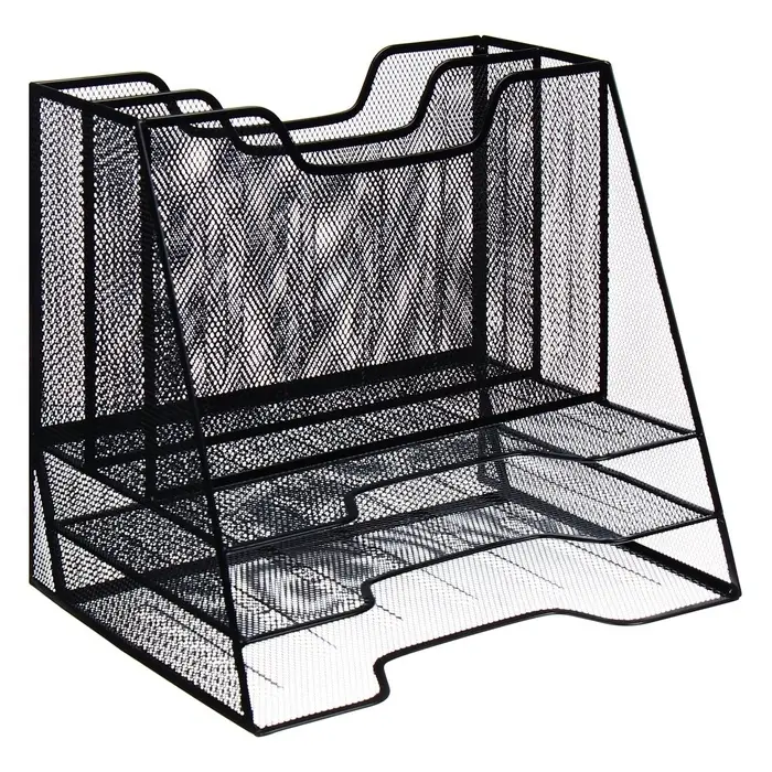 Лоток для бумаг металлическая сетка, 5 отделений, чёрный