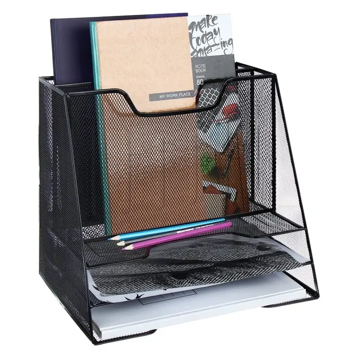 Лоток для бумаг горизонтальный, металлическая сетка, 3 отделения, чёрный