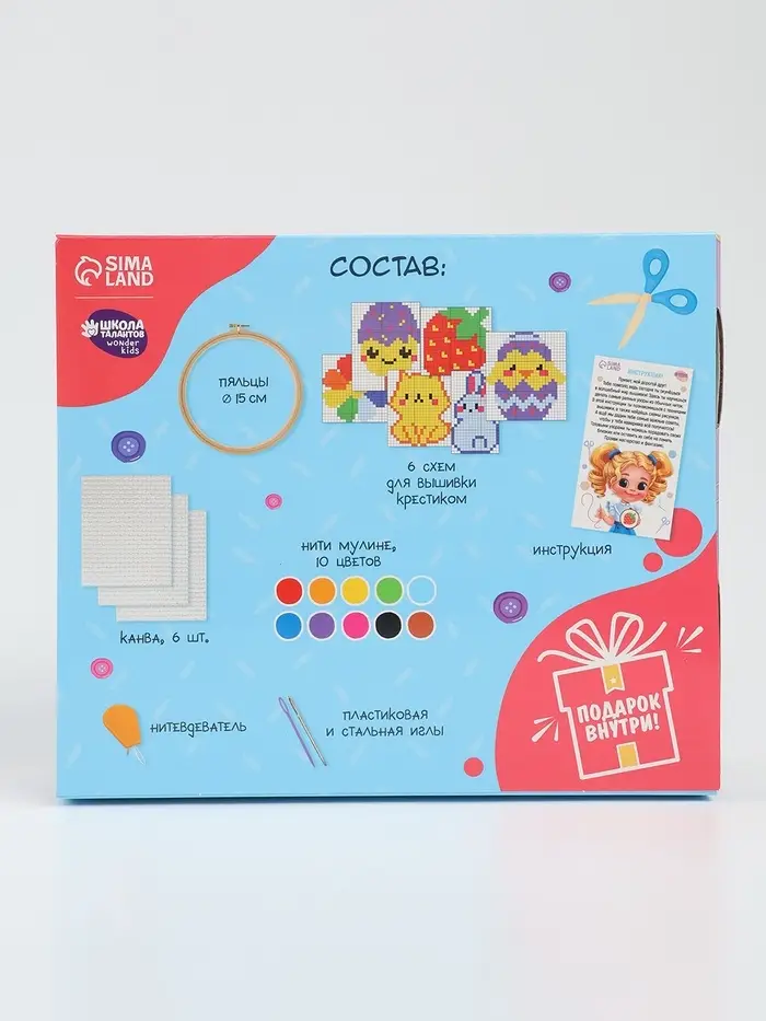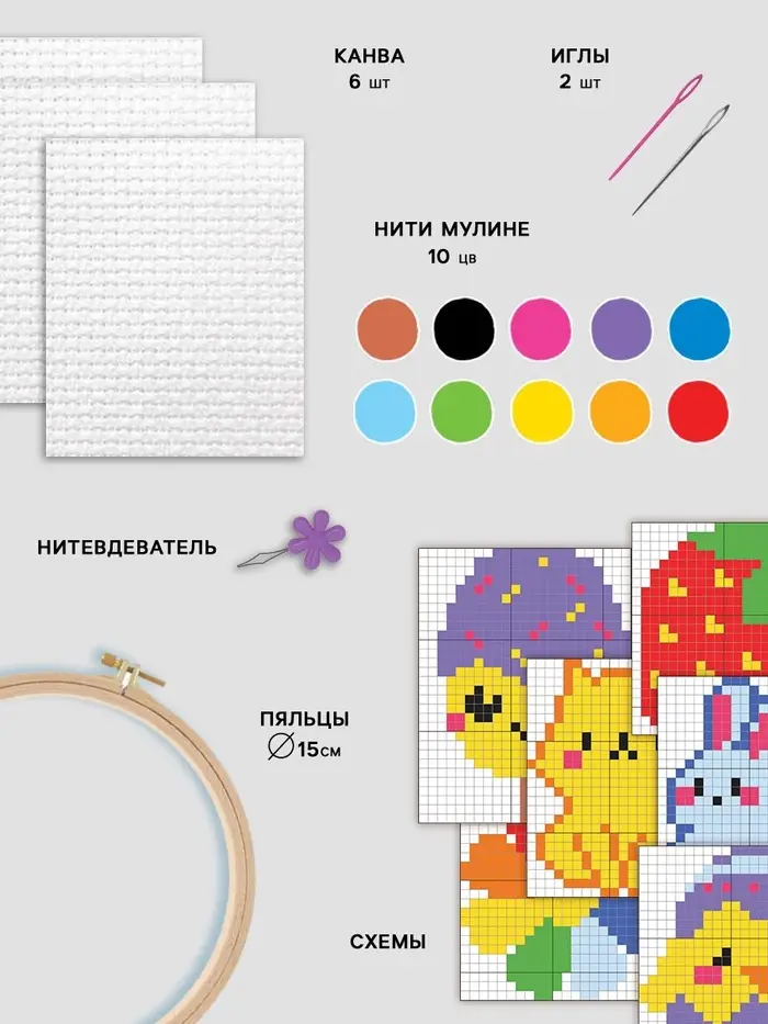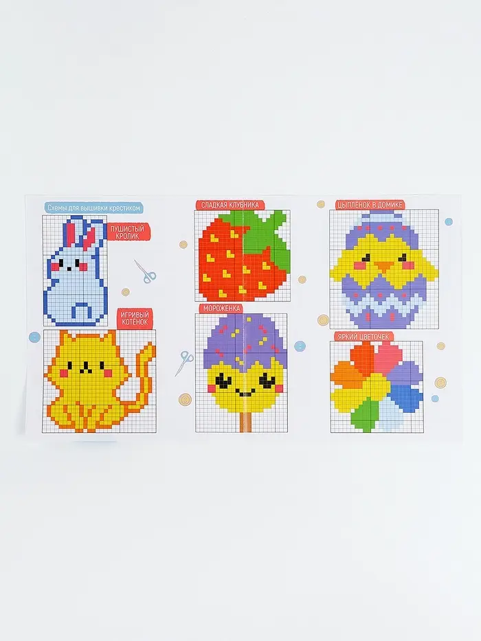 Вышивка с красивым рисунком и цветной схемой — то, что нужно малышу, чтобы освоить новое хобби!