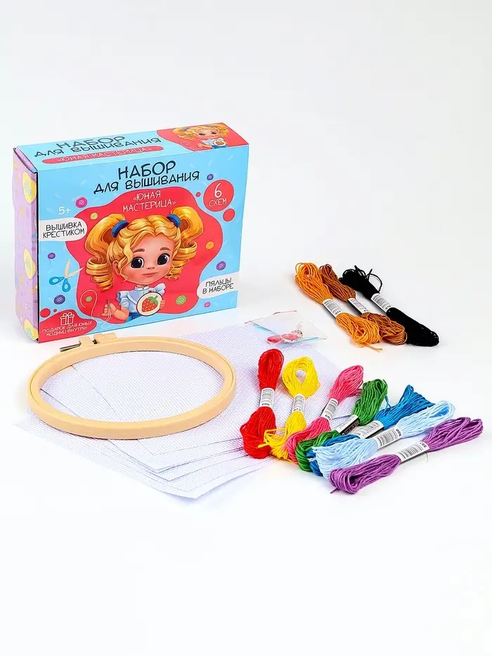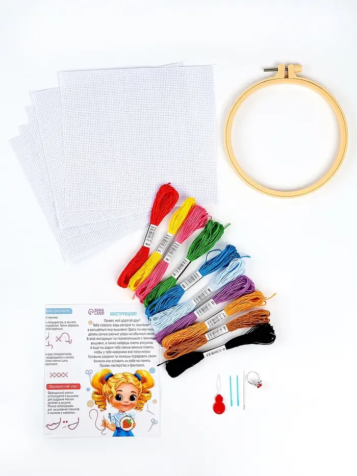 Вышивка крестиком с пяльцами для детей «Юная мастерица», набор для творчества