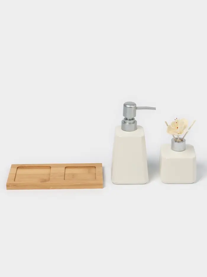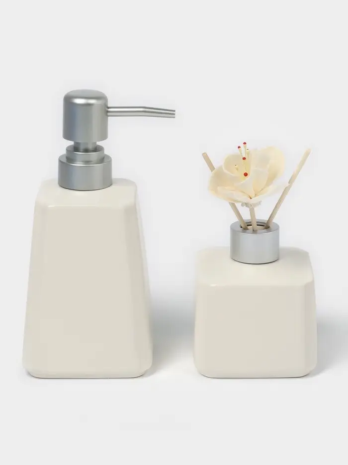 Элегантный набор для ароматизации пространства в белом цвете станет стильным дополнением интерьера. Комплект из трёх предметов выполнен из керамики, что обеспечивает долговечность и устойчивость к внешним воздействиям. Минималистичный дизайн без рисунков подчеркнёт современный стиль помещения, а однотонная тематика легко впишется в любую обстановку.