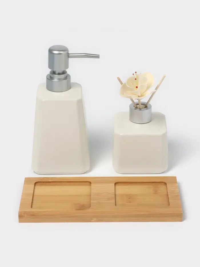 Набор идеально подходит для создания уютной атмосферы в доме или офисе. Керамическая основа не только выглядит изысканно, но и обеспечивает долговечность использования. Минимализм и функциональность делают этот комплект универсальным решением для тех, кто ценит эстетику и качество.