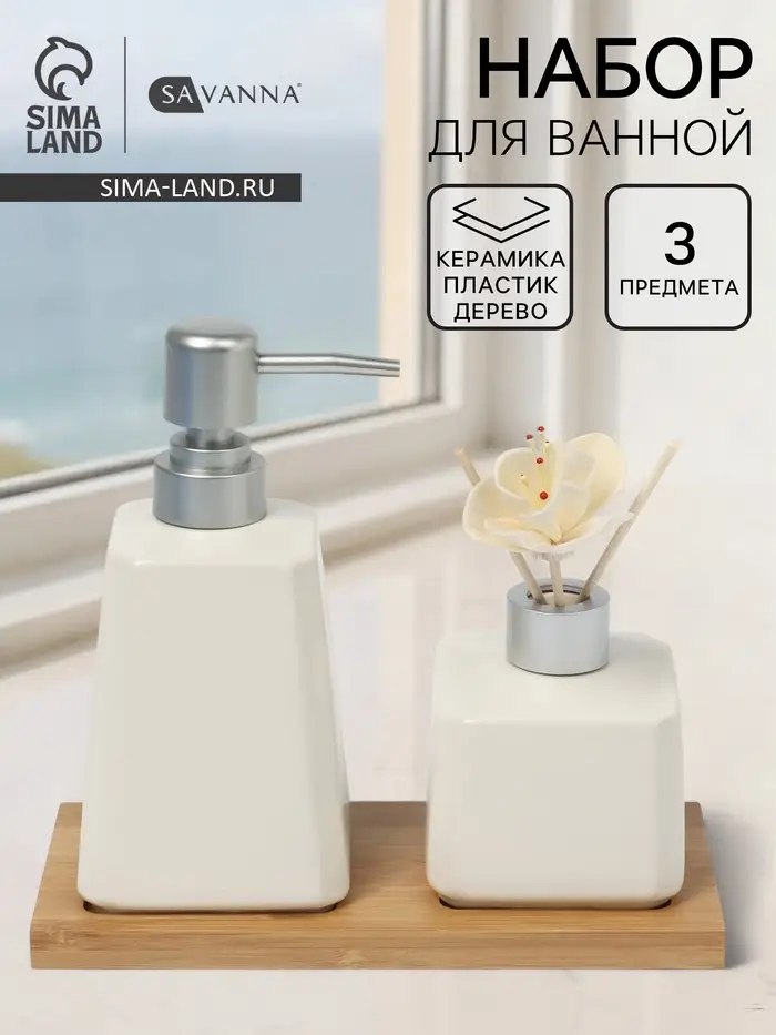 Аксессуары для ванной SAVANNA Monro, 4 предмета, мыльница, дозатор для мыла 450 мл, стакан, баночка, белые