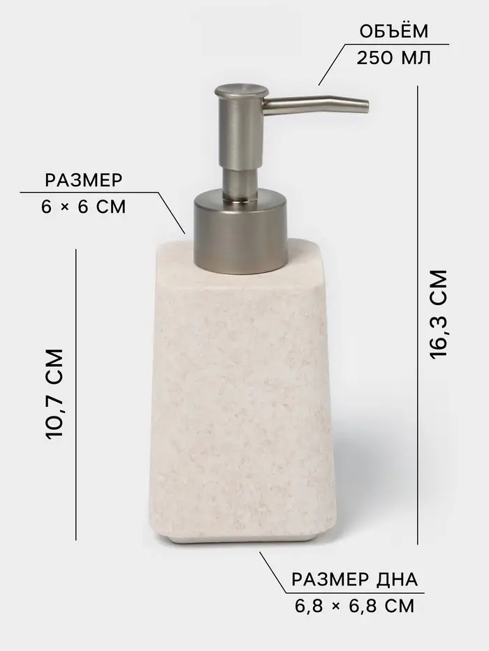 - Удобство использования: дозатор для мыла позволяет легко контролировать количество средства, а стакан станет надежным местом для хранения зубных щеток или других мелочей.