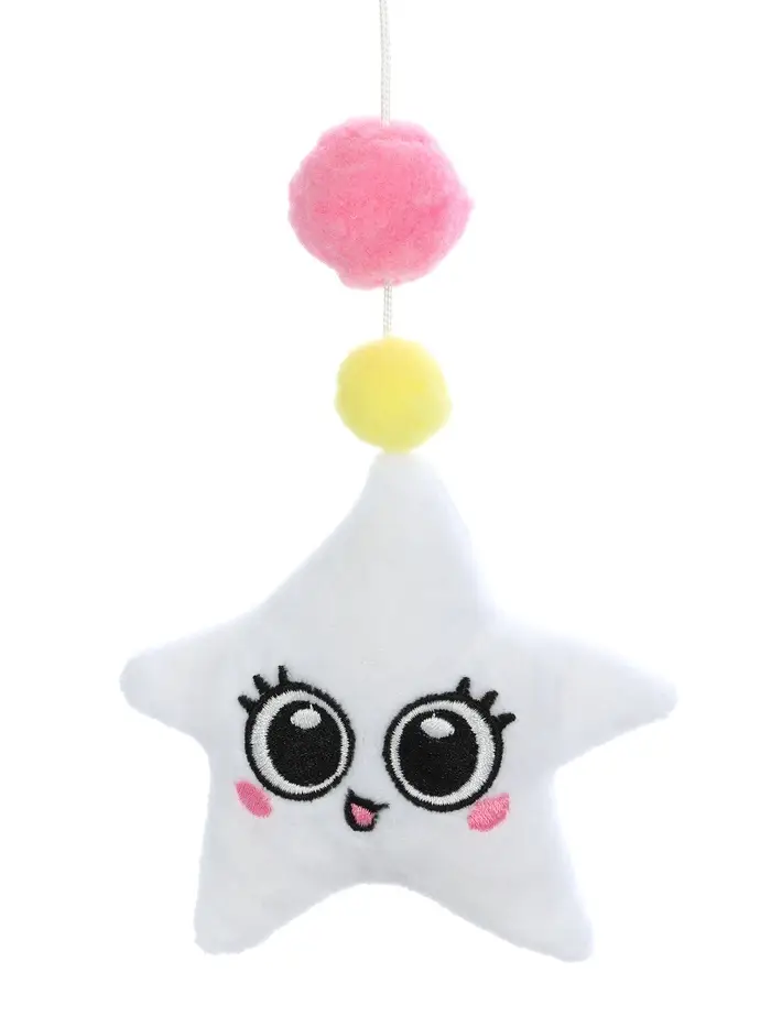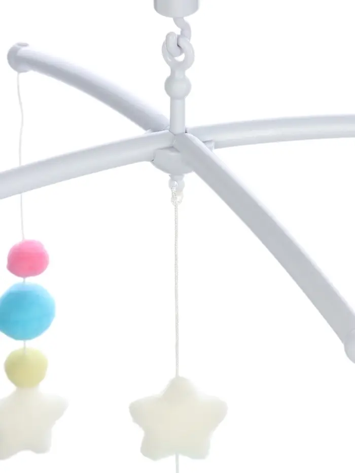 - Комбинация пластика и текстиля делает мобиль лёгким и приятным на ощупь, а отсутствие острых деталей исключает риск травм.