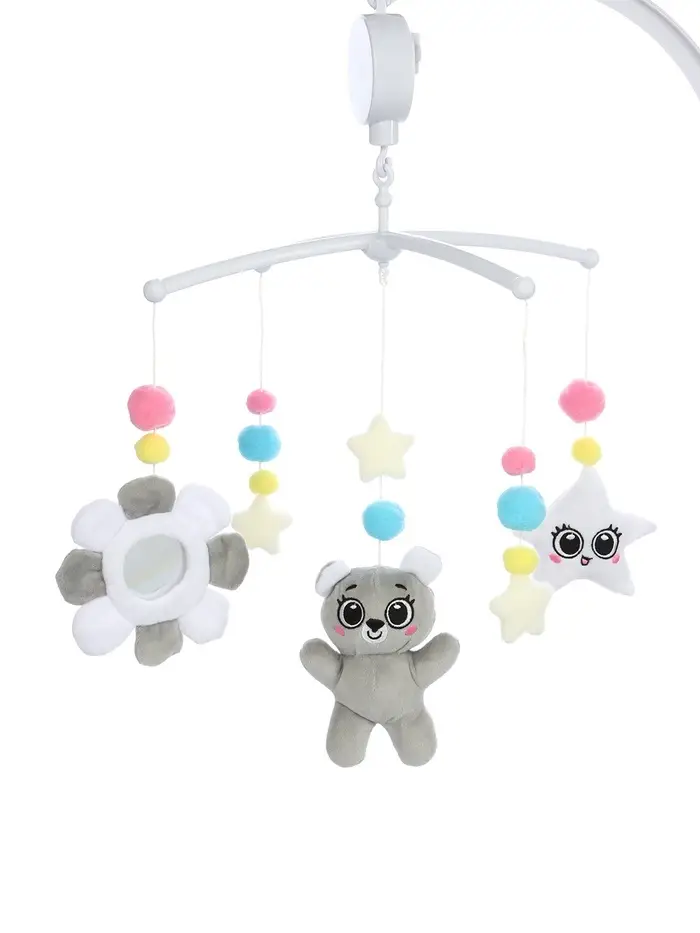 Мобиль музыкальный на кроватку Крошка Я «Забавный мишка», звуковые эффекты, серый