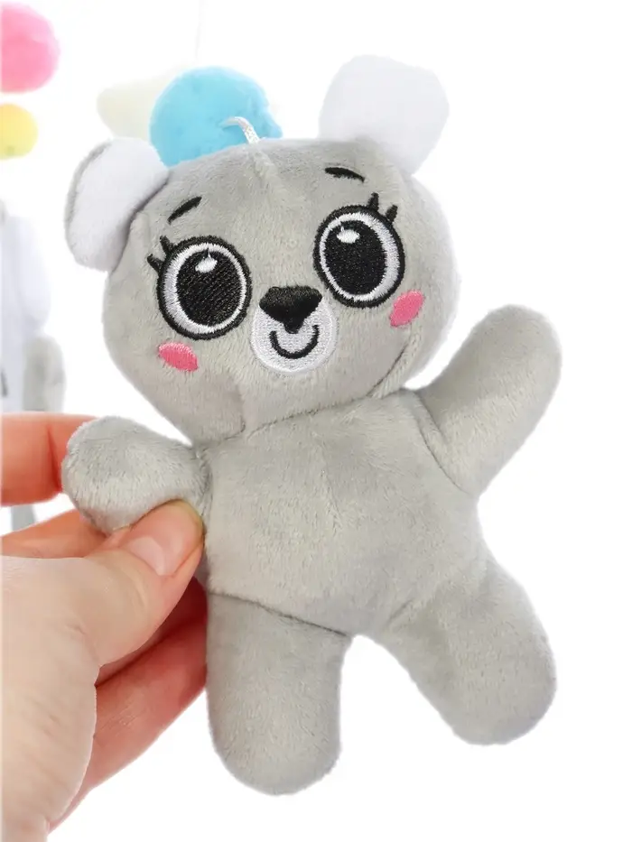 - Три плюшевых подвески привлекают внимание, стимулируют развитие зрения и мелкой моторики, а также дарят ощущение уюта.