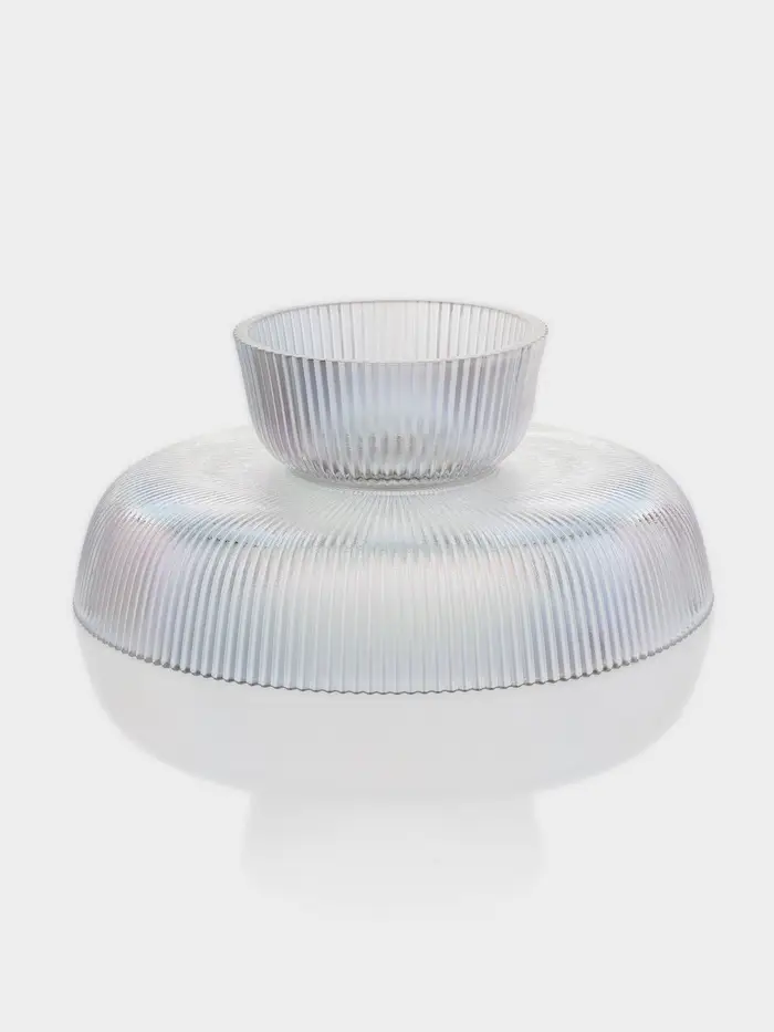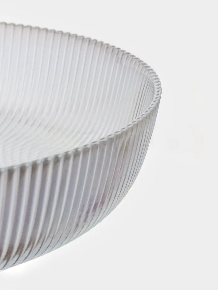 - Материал и текстура: изготовлена из стекла с рельефной структурой, что придаёт изделию дополнительный тактильный и визуальный эффект.