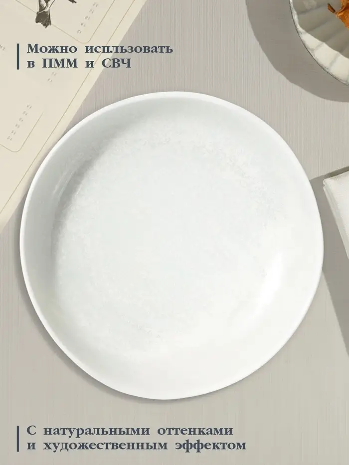 - Круглая форма: Классический дизайн, позволяющий легко сочетать тарелку с другой посудой.