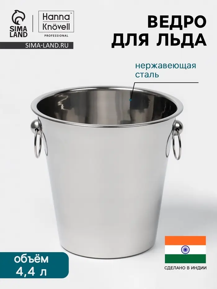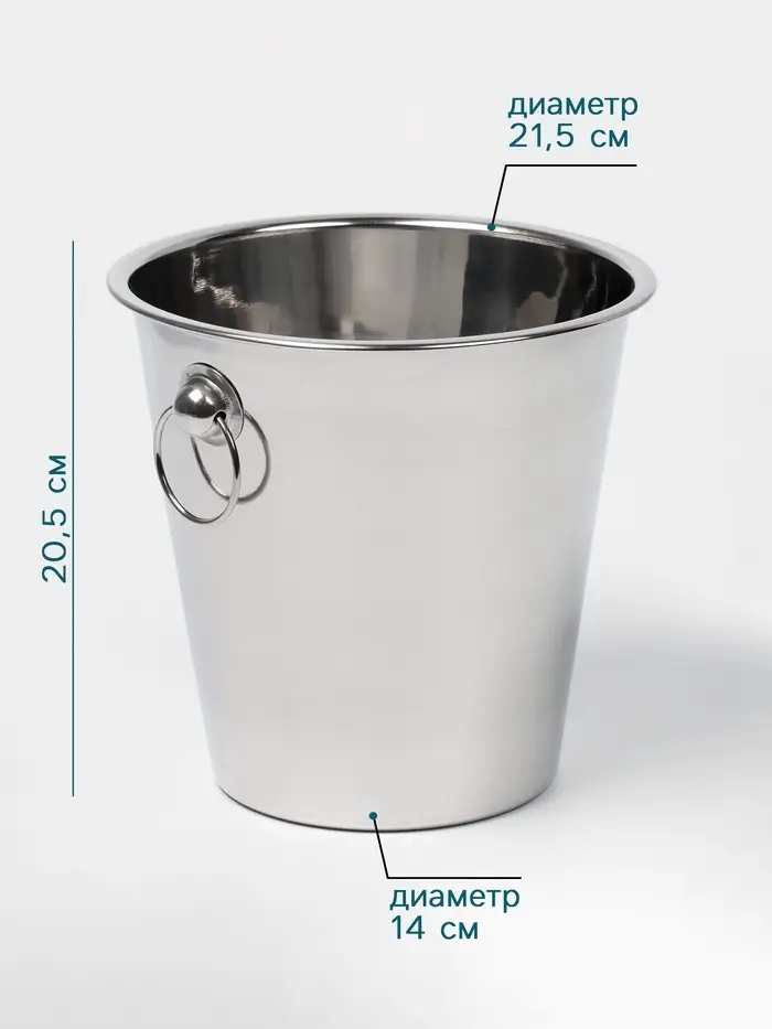 Ведро для льда, 5 л, 29×20×27 см, нержавеющая сталь, хромированное