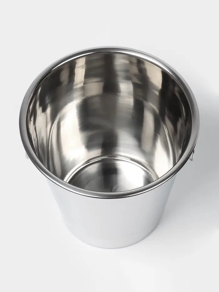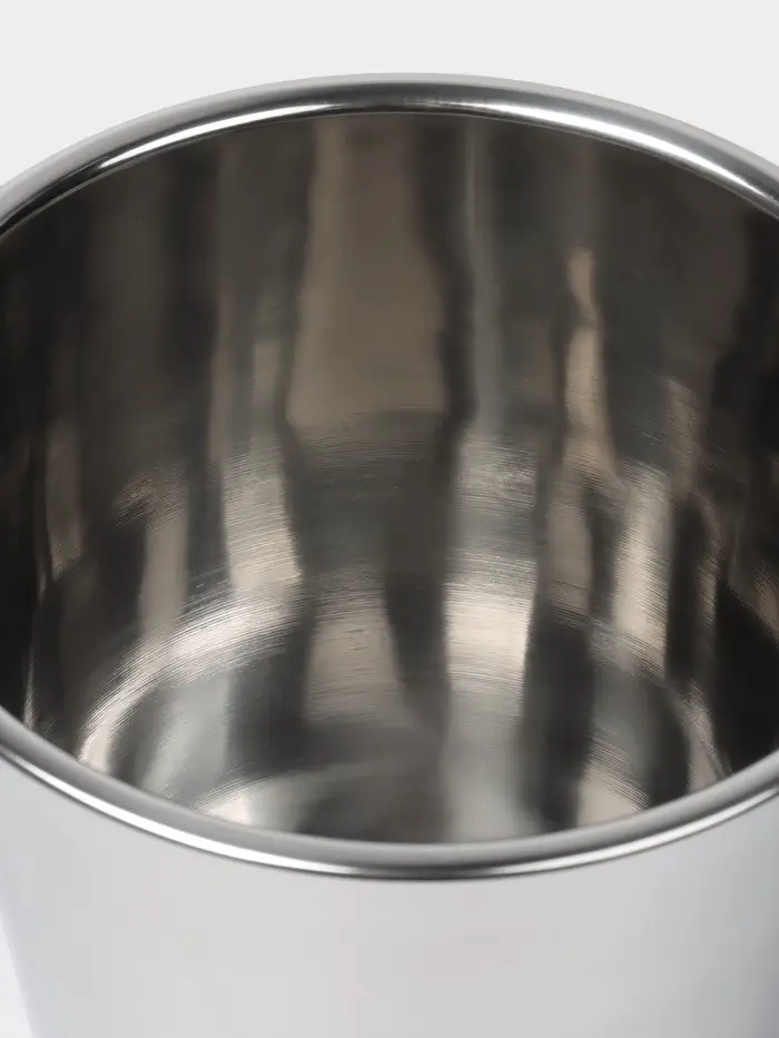 Изготовленное из высококачественной нержавеющей стали, ведро сочетает в себе прочность и современный дизайн. Серебристый цвет и отсутствие рисунка делают его универсальным элементом декора, который гармонично впишется в любую обстановку.