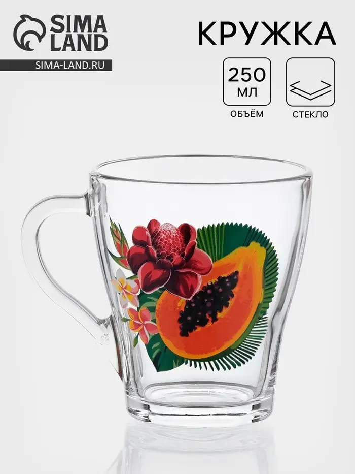 Кружка «Тропические фрукты», 250 мл, стекло, прозрачная, рисунок МИКС