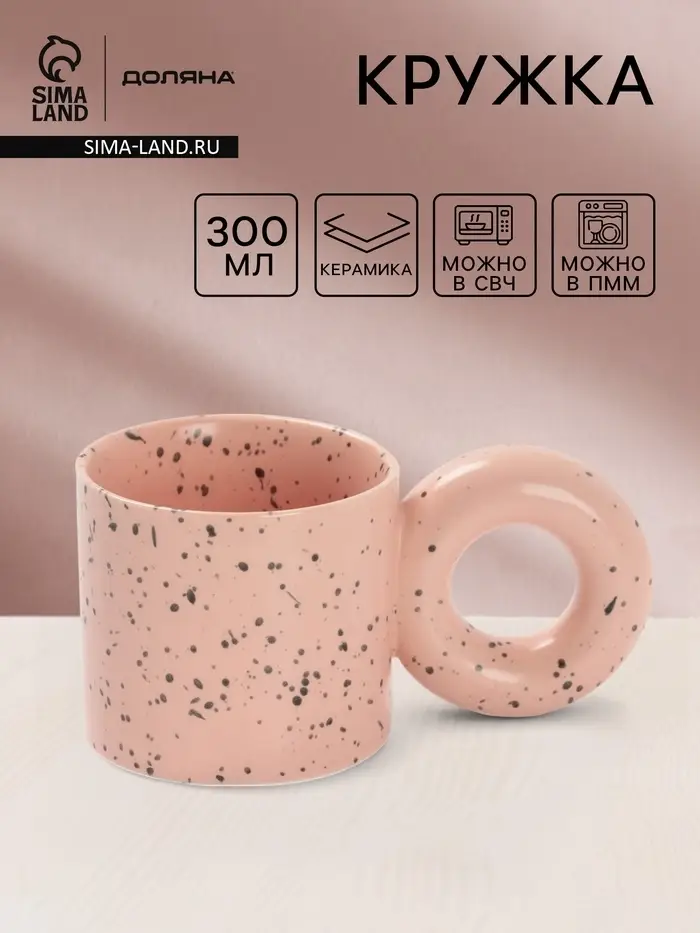 Кружка «Бублик»» изготовлена из качественной керамики. Оригинальный дизайн в крапинку придаёт кружке особенный вид.