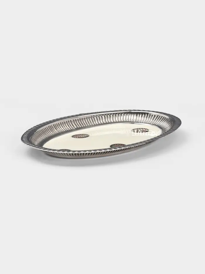 - Винтажный дизайн с рисунком: Поверхность менажниц украшена изящным тиснением. Сочетание матового белого и серебристого оттенков создает благородный ретро-стиль, который подчеркивает вкус и цвет любых продуктов.