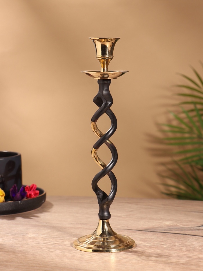 Подсвечник на 1 свечу "Золотое сечение" латунь, черный с золотом 7х7х24,5 см