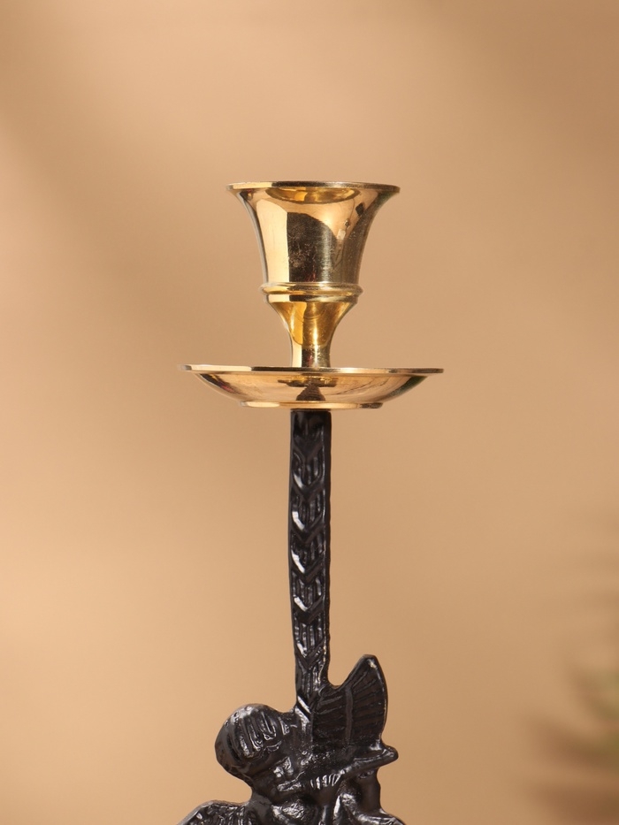 Подсвечник на 1 свечу, латунь, черный с золотом 8,5х8,5х23,5 см