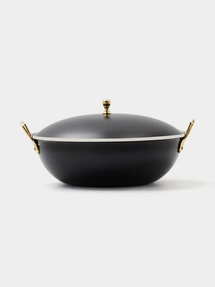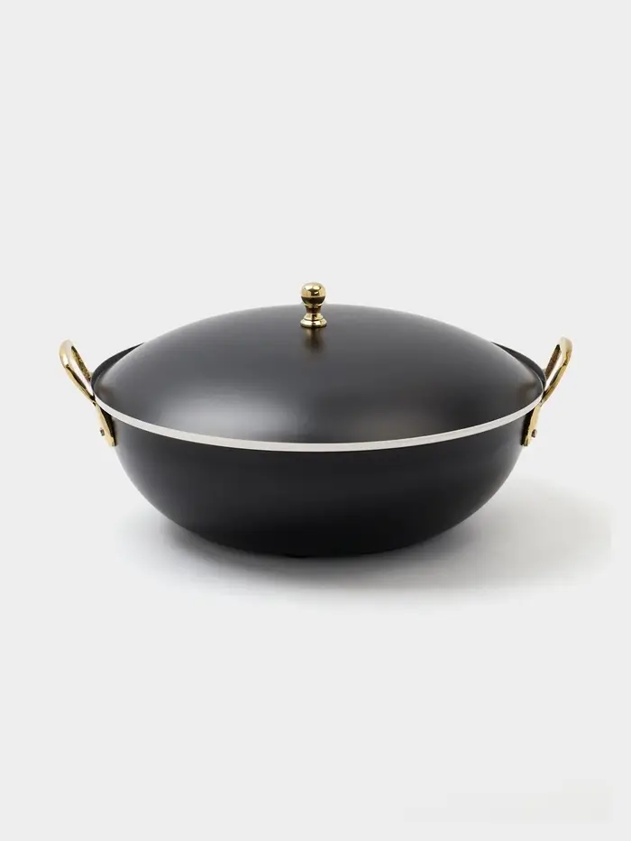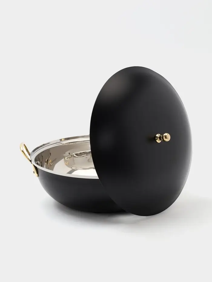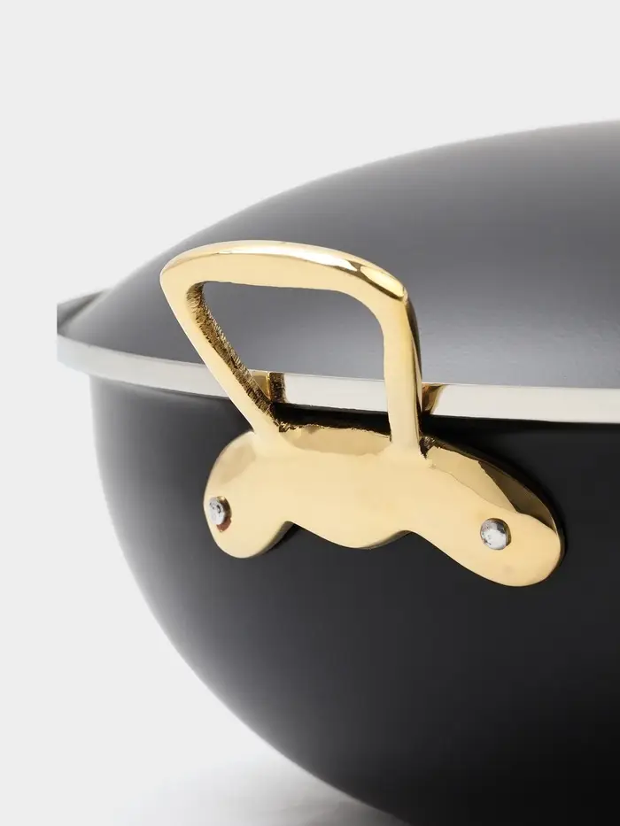 - Стильный дизайн «под жемчуг»: Глубокая чаша и фигурная крышка из качественной нержавеющей стали имеют благородное чёрное покрытие с золотистым акцентом по ободку. Такой декор создаёт эффект драгоценной столовой посуды, делая подачу любого блюда изысканной.