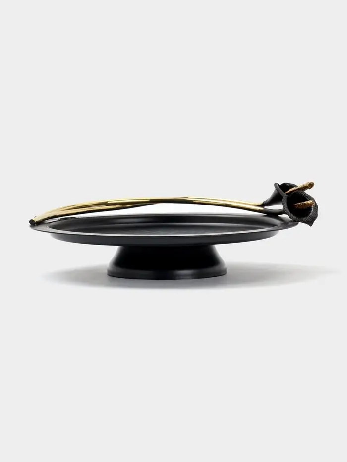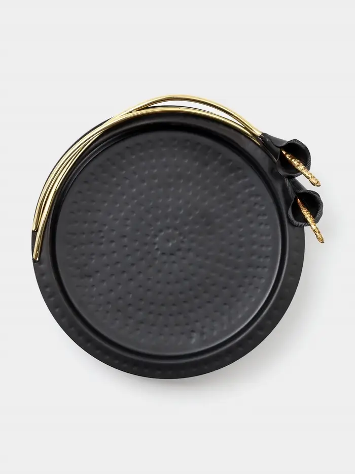 - Выразительный дизайн с фигуркой: Блюдо украшено объемным изображением каллы — цветка, символизирующего восхищение и изысканный вкус. Сочетание матового черного фона и золотистого контура создает эффектную глубину и графичность, делая сервировку запоминающейся.
