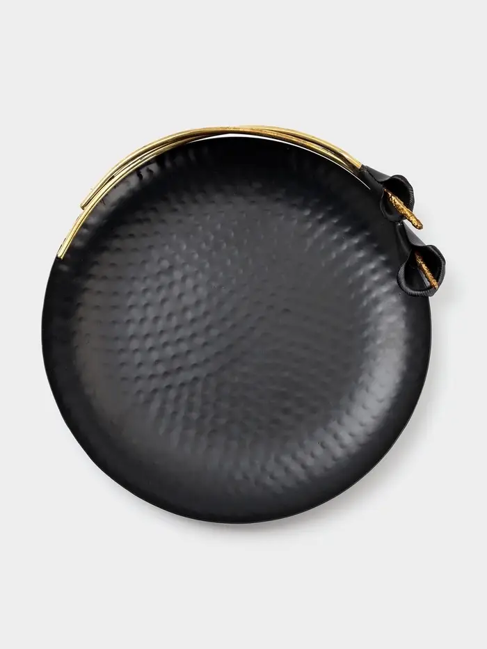 - Функциональная форма и материал: Круглое блюдо диаметром 26 см с фигурным краем изготовлено из прочной нержавеющей стали с чёрным покрытием. Такая форма удобна для размещения порционных закусок, фруктов или выпечки, а матовая чёрная поверхность выгодно подчёркивает цвет и текстуру продуктов.