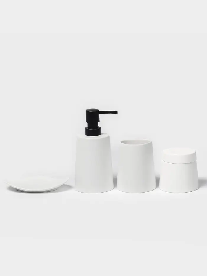 Аксессуары для ванной SAVANNA Monro, 4 предмета, мыльница, дозатор для мыла 450 мл, стакан, баночка, белые