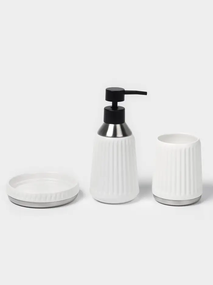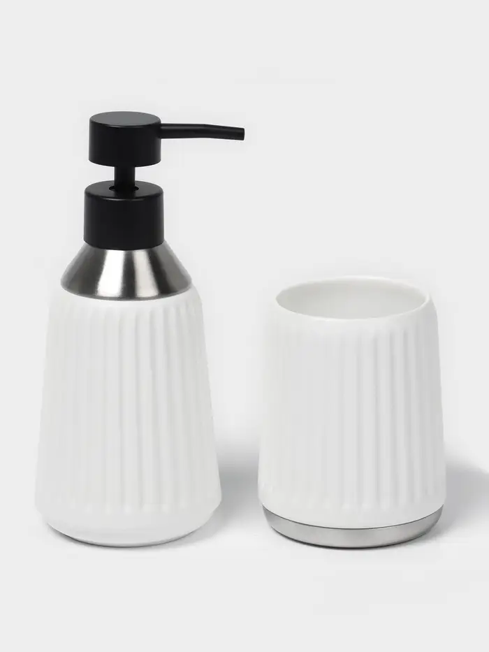- Эстетика и практичность: каждый предмет набора сочетает в себе стильный внешний вид и удобство использования. Дозатор для мыла обеспечивает точную подачу средства, стакан идеально подходит для хранения зубных щёток, а мыльница сохраняет чистоту и порядок.